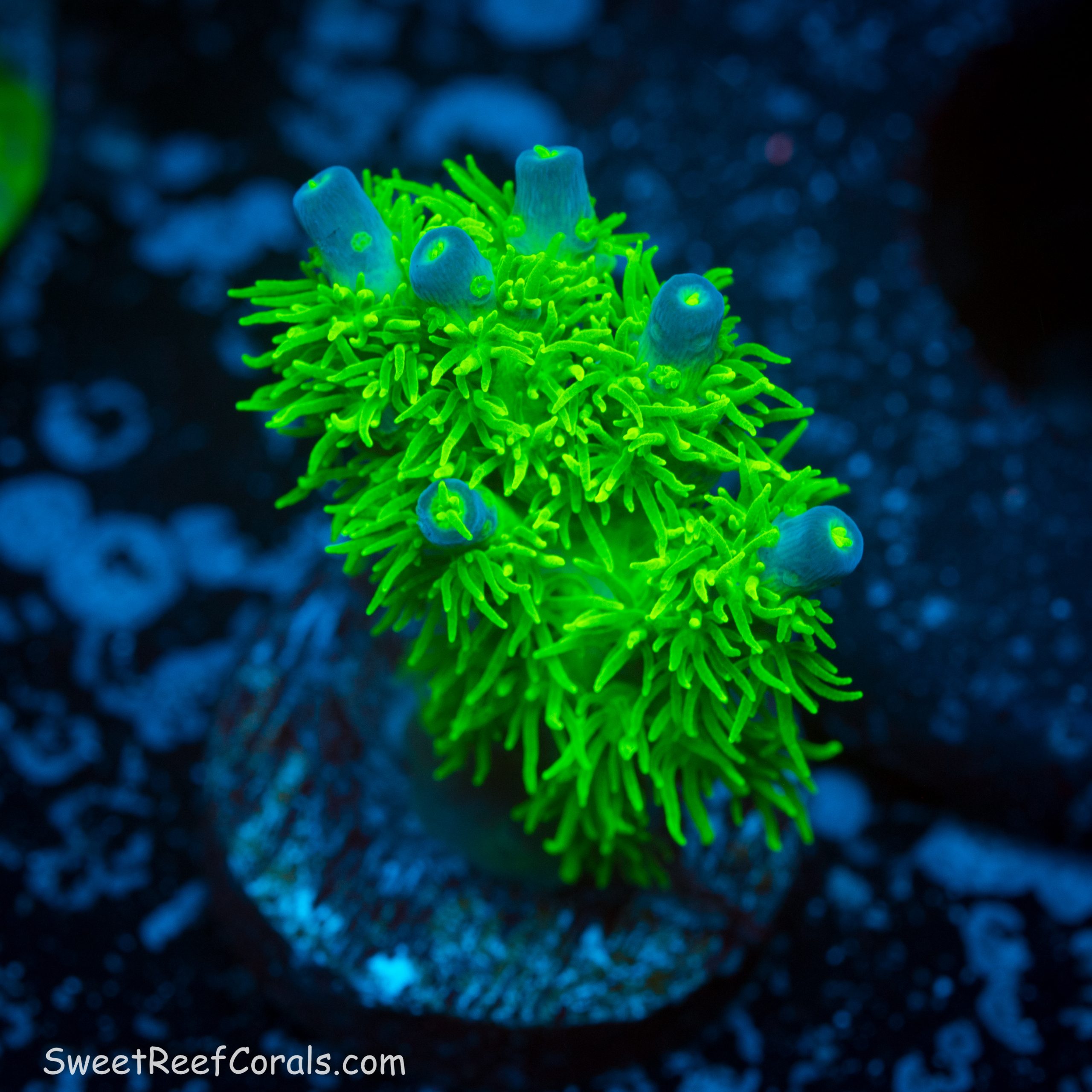 RRC Marvin the Martian mini colony on a standard plug. This is one of our favorites due to the crazy polyp extension!