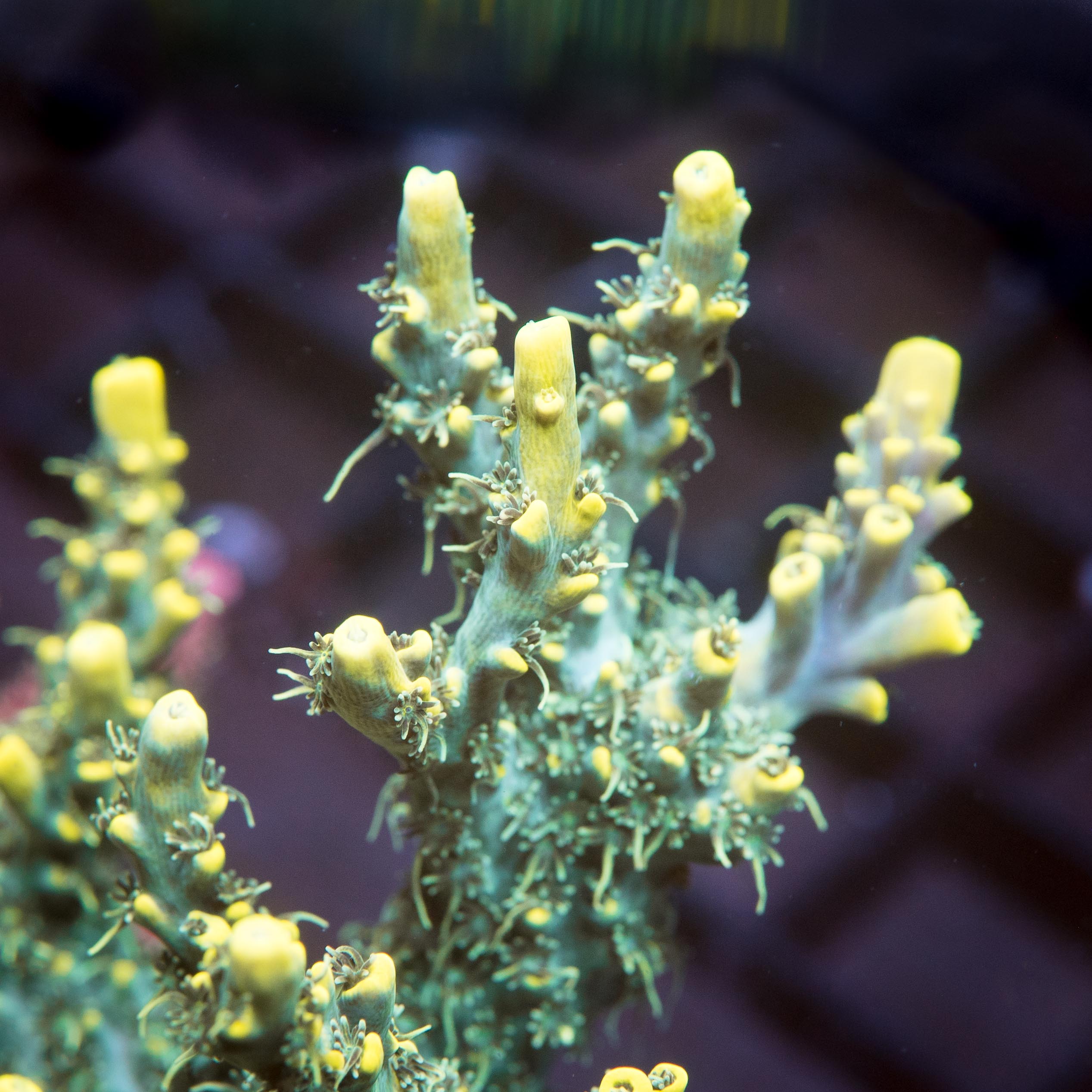 This is a super hairy yellow acro with branch growth that resembles the Vivid Confetti. Best price around!