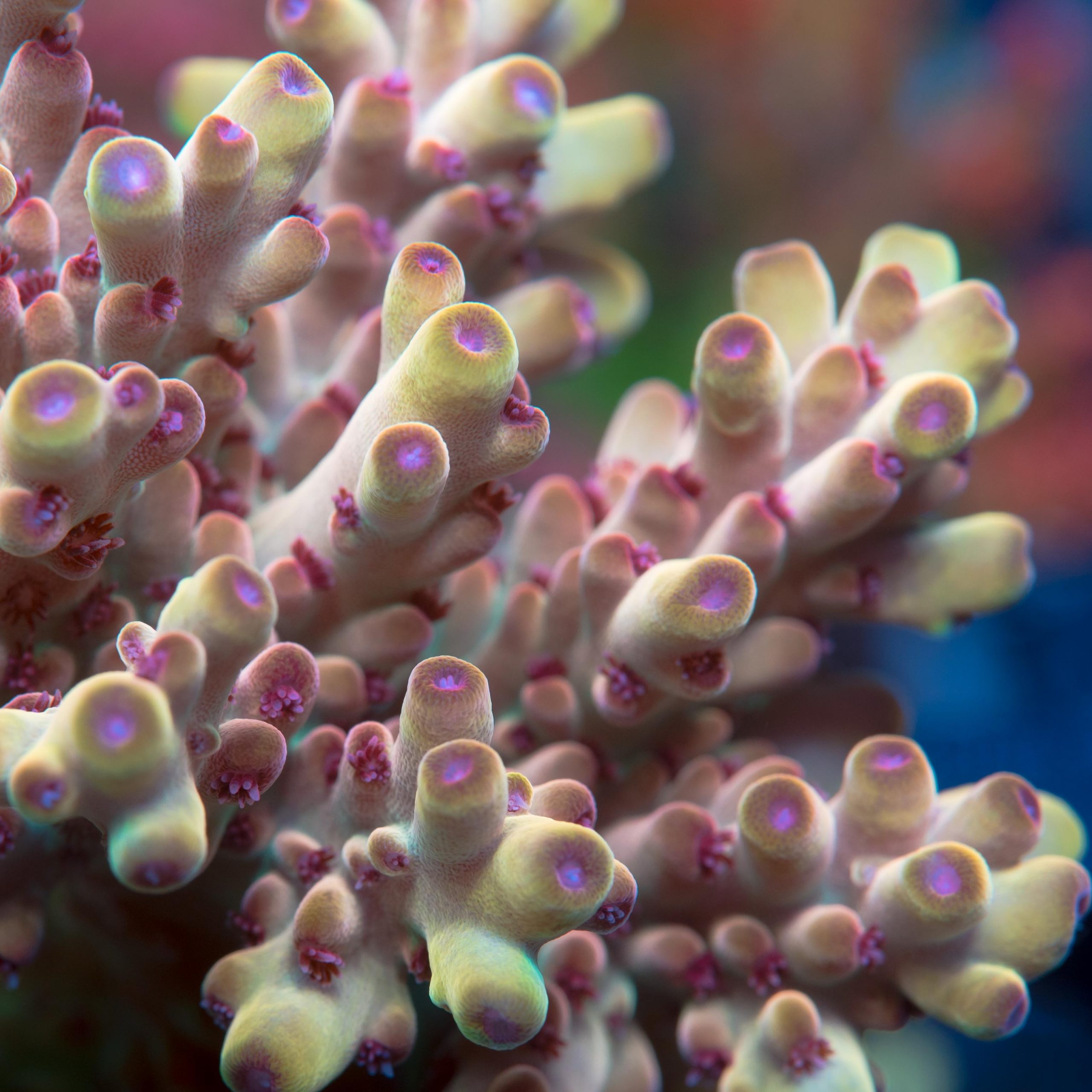 Wow, this A.Granulosa is simply amazing. Our picture shows you exactly what the eye sees when viewing this coral in a full spectrum. Not the oversaturated pics you find on a Google search. We also have the best price you can find!