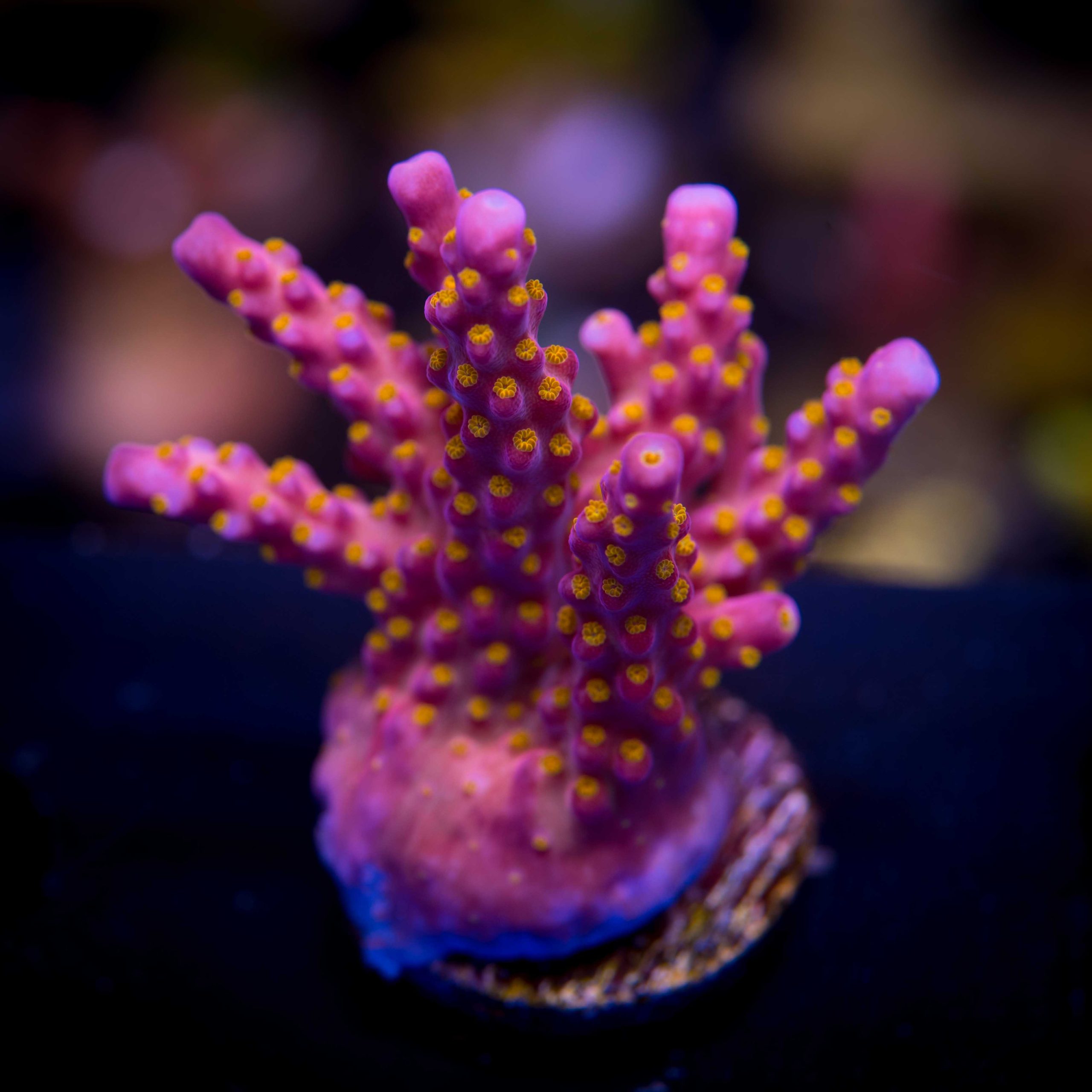 The orange polyps on that purple skin are just incredible! Best price you can find on a chunky, well healed frag like this!
