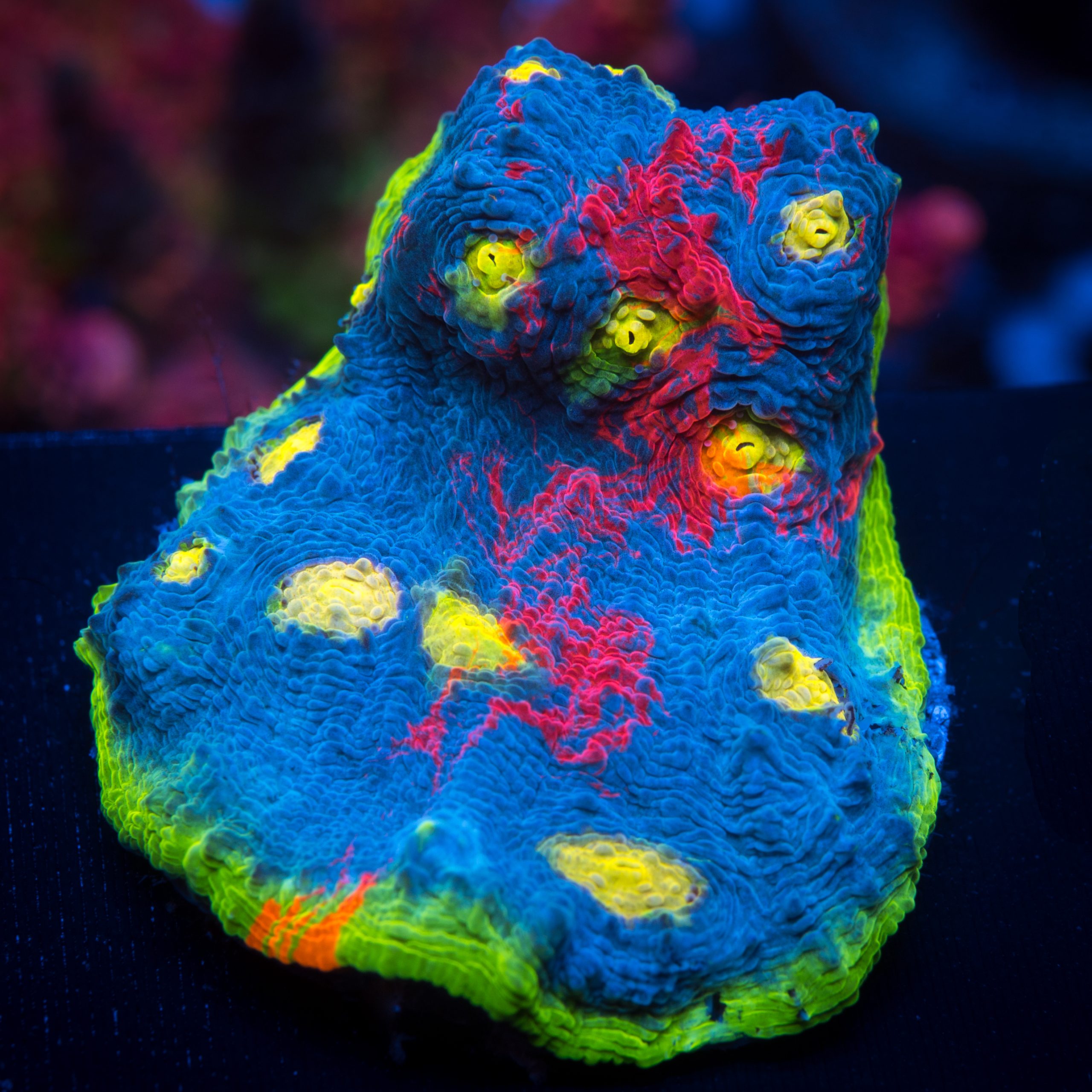 This is a large (1.25″ plug), fully encrusted frag of the OG jellybean chalice